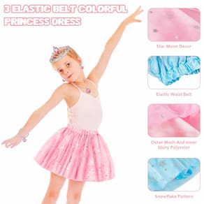 Conjunto de brinquedos Jewelry Dress Up Accessories para meninas: os jogos de RPG de princesas satisfazem a fantasia de sua filha de ser princesa. Esses brinquedos de vestir e fingir brincar para meninas de 3 a 4 a 6 a 7 anos são perfeitos para festas, festas à fantasia, presente de aniversário, presente de Halloween, presente de Natal e atividades familiares. Qualquer dúvida, sinta-se à vontade para entrar em contato conosco! - Um pacote Fantastic Princess Dress Up: vem com 3 saias de cores diferentes com estrelas cintilantes combinando com 3 cores de tênis de salto infantil, 3 tiaras de princesa, 3 colares e 3 anéis, um estojo de transporte elegante para todos os brinquedos de princesa bem organizados. Embalado em uma linda caixa de armazenamento azul especialmente projetada para meninas para deixá-la arrumada e transportar facilmente seu conjunto de princesa para qualquer lugar - Sapatos Princess Dress Up Play: a saia princesa com elástico na cintura tem forro de poliéster e uma camada externa de tule coberta por flocos de neve, estrelas e brilhos com estampa lunar. 3 pares de sapatos princesa largos antiderrapantes para meninas apresentam decoração em laço em cores diferentes. É fixado no sapato costurando, em comparação com a colagem, tornando-o mais seguro e confortável. Conjunto de fantasias de princesa adorável: isso traz mais estilo moderno ao guarda-roupa Her Play. Esta é uma boa adição ao guarda-roupa de sua pequena dama do reino das princesas. Muitas saias e acessórios de princesa lindos e coloridos para ela escolher se tornar a princesa que quiser, que não apenas inspiram a imaginação e a criatividade da garota, mas também aumentam a confiança e a estética moderna. Embalagem requintada: o design requintado do estojo de armazenamento guarda todos os pares de sapatos de vestir e joias cintilantes em um local seguro e arrumado. Fácil de transportar e guardar, permite que as meninas vistam lindos jogos de princesas, não importa onde estejam em ambientes fechados, externos e para festas - Joias, acessórios, conjunto de brinquedos para meninas: os jogos de RPG de princesas satisfazem a fantasia de sua filha de ser princesa. Esses brinquedos de vestir e fingir brincar para meninas de 3 a 5 6 a 7 anos são perfeitos para festas, festas de fantasia, presente de aniversário, presente de Halloween, presente de Natal e atividades familiares. Qualquer dúvida, sinta-se à vontade para entrar em contato conosco!