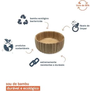 Para todas as horas: uma mão na roda na hora de preparar e de servir suas receitas preferidas.Para usar como quiser: versátil que só ele. dá para usar como saladeira, fruteira, centro de mesa e muito mais.Em bambu: material leve e ecologicamente correto.Durável e higiênico: o bambu é um material resistente e com propriedades que evitam a proliferação de bactérias, só precisa lavar e secar de acordo com as recomendações, combinado?Esse é o bowl canelado médio de bambu da OIKOS.Lavar a mão