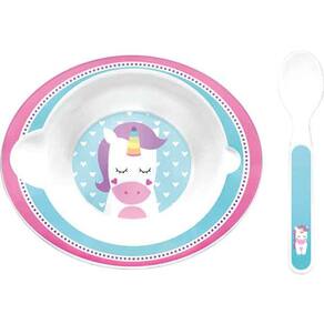 O Conjunto de Bowl e Colher - Unicórnio da Buba vai deixar a hora da refeição muito mais divertida! Possui estampa de bichinho no prato e na colher que vai manter a atenção do pequeno durante as refeições, tornando o momento mais tranquilo para os pais e para os pequenos. É resistente a quedas e pode ir ao freezer e à lava-louças.