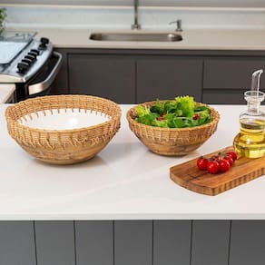 Bowl Copa E Cia Colonial 1500 Ml Bowl Copa e Cia Colonial 1500 ml - Características Gerais do Produto: - Composição: Madeira; Cana - Detalhes: Fabricado na Índia.; Peça Vendida de Forma Individual.; Design Exclusivo Copa&Cia.; As cores podem sofrer pequenas alterações de cor, variando de monitor para monitor.; Os objetos que ambientam as fotos não acompanham o produto.; As fotos produzidas são apenas como sugestão de uso com as demais peças da coleção.; Por ser uma peça com fibras naturais, pode ocorrer pequenas variações de tonalidade. - Cuidados: Lavar com Detergente Neutro e Esponja Macia.; Não Deixar de Molho.; Armazenar em local seco e arejado.; Não colocar em lava-louças e micro-ondas.; Deixar Secar ao Natural; Evitar contato com objetos cortantes ou superaquecidos.; Não utilizar solventes, abrasivos ou alvejantes. - Dimensões (cm): Bowl 1500 ml: 25 cm ; Bowl 2000 ml: 30 cm Acompanha o produto: - 1 Peça de Bowl Garantia: - 7 dias/30 dias contra defeito de fabricação