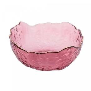 1 Bowl de Cristal Martelado c/ Borda Dourada Taj Rosa 19x10cm 28955 - Wolff