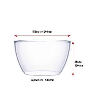 Indicado para: Sobremesas, saladas e frutas Material: Vidro Capacidade: 2440ml