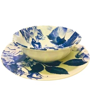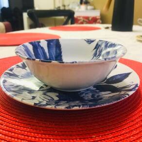 Lindo Jogo de Lanche com designe romântico, super resistente é excelente para servir sopas,caldos,consumês,Sobremesas. Acompanha o Prato de Sobremesa ficando muito elegante à mesa.