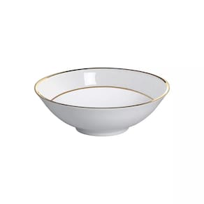 Bowl Relevo Ouro Alleanza 6 Peças As linhas dessa coleção possuem um diferencial em seu design com relevos em seu próprio esmalte, o que proporciona um charme diferenciado nas peças. Um toque de luxo, vem com o detalhe do filete em Ouro feito à mão, um brilho que agrega todo encanto e riqueza de um produto digno das mais sofisticadas mesas. peças elaboradas em cerâmica Feldspatica branca de alta resistência, com processo de decoração digital, sobre a base branca, filetadas a mão em ouro. Dimensão: 16cm Altura: 5cm Capacidade: 300ml Material: Ceramica