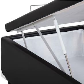 GARANTA DO PRODUTO - 06 meses na estrutura - 90 dias no tecido ESTRUTURA INTERNA Armação box simples Articulada - Estrutura de pinus / eucatex - Pistão para abertura do Box Baú MEDIDA INTERNA DO BAÚ - Largura 10cm menor que o tamanho externo do box baú - Comprimento 10cm menor que o tamanho externo do box baú - Profundidade 19cm ESTRUTURA EXTERNA Faixa lateral e tampão do box - Revestimento corano preto