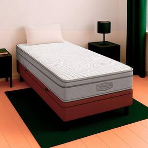 O Conjunto Colchão Los Angeles + Base Box Baú Bravus da V-Store oferece conforto e funcionalidade. O colchão, com molas ensacadas e sistema EPS, garante suporte ideal, conforto térmico e proteção . A base box, com amplo espaço de armazenamento, é feita de madeira reflorestada e revestida com tecido resistente, proporcionando praticidade e sofisticação ao seu quarto.
