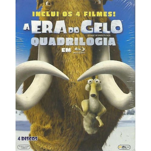 Box Blu-ray - A Era Do Gelo - Quadrilogia 4 Filmes - Lacrado     Coleção com os quatro filmes da animação "A Era do Gelo". Era do Gelo Na Era do Gelo, a Terra era um magnífico mundo pré-histórico repleto de perigos. Algumas pequenas e preguiçosas criaturas começam a migrar para o sul. Com a exceção de Manfred, um mamute rabugento, e Sid, um bicho preguiça atrapalhado. Juntos, eles embarcarão numa aventura emocionante para ajudar um bebê humano a encontrar sua família. Era do Gelo 2 Sequência do sucesso ''A Era do Gelo'', trazendo de volta Diego, Manny e Sid. Agora eles enfrentam o fim da era do gelo, quando tudo está derretendo. A destruição é perigosa e eles devem tomar cuidado e alertar a todos sobre a situação. Era do Gelo 3 Nossos heróis das terras geladas dos mega sucessos mundiais A Era do Gelo e A Era do Gelo 2 estão de volta na aventura mais incrível das últimas eras. Junte-se a Scrat, Manny e Diego empenhados numa perigosa missão para salvar o maluco do Sid. Para isso, os amigos têm que se aventurar num misterioso mundo subterrâneo, no qual encontram bem de perto dinossauros, enfrentam a flora e fauna, e conhecem Buck, uma inquieta doninha de um olho só metida a caçadora de dinossauros. Era do Gelo 4 A louca perseguição de Scrat sempre à caça de sua noz inquieta - perseguição à qual ele tem se dedicado desde os primórdios dos tempos - tem consequências que mudam o mundo e causam um cataclismo continental que leva Manny, Diego e Sid a viverem a maior aventura de todos os tempos. Nessa maré de mudanças, Sid acaba reencontrando sua avó turrona, e o bando ainda tem de lidar com uma horda de piratas decididos a impedi-los de voltar para casa.