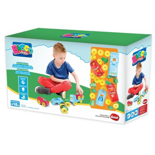 O Box Cars II da Dismat Melhora habilidade motora, foco e concentração. Estimula a inteligência, criatividade, planejamento e organização, pois criança feliz se desenvolve brincando. Formas que auxiliam na aprendizagem e na cordenação motora. Blocos que se encaixam com outros brinquedos da Dismat.
