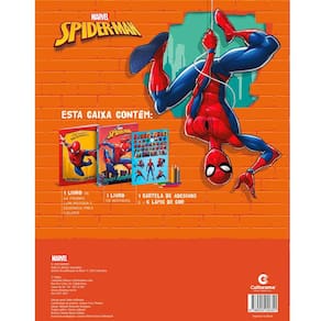 Uma caixa cheia de diversão e muita aventura com o Homem-Aranha! Vem com um livro de história, um livro com desenhos para colorir, 6 lápis de cor e uma cartela de adesivos.