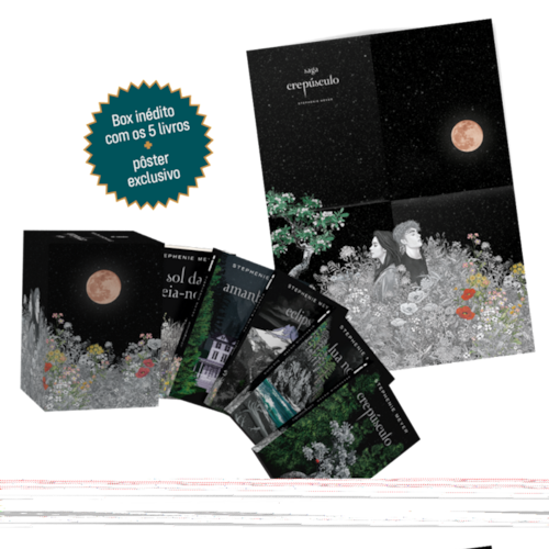 Em comemoração aos 20 anos de Crepúsculo, box inédito reúne os cinco livros da saga com novas capasUm dos maiores fenômenos editoriais dos últimos tempos, a saga Crepúsculo vendeu mais de 160 milhões de exemplares no mundo e deu origem a cinco filmes que bateram recordes de bilheteria. Publicado originalmente em 2005 nos Estados Unidos, Crepúsculose consagrou como um clássico moderno, redefinindo a literatura jovem adulta — um fenômeno que, de geração em geração, inspira os fãs até hoje.Para com emorar os 20 anos da primeira publicação, a Intrínseca lança um novo box que reúne pela primeira vez os cinco livros da saga. Em Crepúsculo, Stephenie Meyer deu início a uma história de amor improvável e inesquecível entre uma jovem e um vampiro. Em Lua nova, o laço entre eles é posto à prova, e Bella pode pôr tudo a perder ao se aproximar de Jacob, seu amigo lobisomem. Eclipse coloca vampiros e lobisomens, inimigos mortais, lado a lado, numa proximidade perigosa. Em Amanhecer, aguardado desfech o da trama, Bella precisa escolher seu destino: vida ou morte. Já Sol da meia-noite faz um retorno triunfal ao primeiro livro, dessa vez pelo ponto de vista do sombrio e enigmático vampiro.Com as artes delicadas e o traço único do artista filipino Pe dro Tapa, a icônica história de amor de Bella Swan e Edward Cullen ganha novas capas, com acabamento brochura e impressão trilateral. Apaixonante e cheia de reviravoltas surpreendentes, essa saga de amor e vampiros conquistou definitivamente a imorta lidade literária.