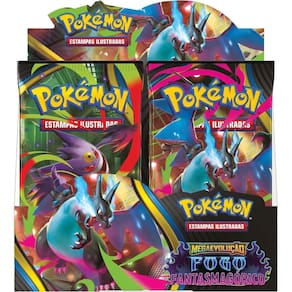Aumente a sua coleção com este combo, que conta com 36 pacotes de booster (216 unidades de cartas) de Megaevolução - Fogo Fantasmagorico do Pokémon Estampas Ilustradas!