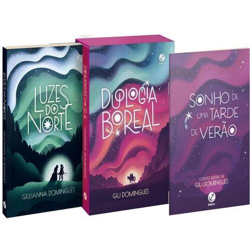 Agora reunida em um box, conheça a duologia Boreal, estreia de fantasia sáfica de Giu Domingues! Com caixa ilustrada por Taíssa Maia, que também ilustrou as capas da duologia, acompanha conto extra inédito com conteúdo explícito. Em Luzes do Norte, somos apresentados à gélida Nurensalem, onde nem tudo é exatamente o que parece. Entre ursos assustadores, florestas nevadas, mistérios e intrigas políticas, Dimitria Coromandel tem uma única missão: proteger Aurora van Vintermer. Em Sombras do Sul, conclusão eletrizante da duologia, uma maldição faz com que Aurora e Dimitria deixem Nuremsalem em busca de respostas no sul. Com o perigo iminente ameaçando a felicidade das duas, a princesa e a caçadora devem decidir até onde estão dispostas a ir para salvar o futuro de seu relacionamento. Classificação indicativa: 18 anos “Um romance peculiar.” – PublishNews
