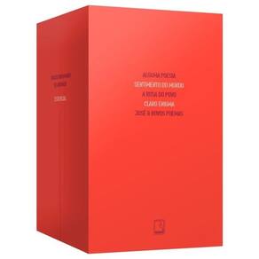 Os cinco clássicos essenciais de Carlos Drummond de Andrade, em box exclusivo, com projeto gráfico de Mayumi Okyama e ensaio inédito do poeta Tarso de Melo. Para celebrar um dos maiores nomes da poesia moderna brasileira, foram reunidos em um box de luxo os 5 clássicos essenciais de Carlos Drummond de Andrade: Alguma poesia , Sentimento do mundo, José & Novos poemas , A rosa do povo e Claro enigma . Com projeto gráfico assinado pela designer Mayumi Okuyama, os livros têm capa dura e pintura trilateral. De presente, o box traz um livreto, Vida e obra , reunindo um ensaio inédito do poeta Tarso de Melo e a cronologia completa de vida e obra de Drummond; e 6 cards com diferentes autocaricaturas e versos de Drummond. Alguma poesia (120 páginas) “No meio do caminho”, “Poema de sete faces” e “Quadrilha” estão entre os poemas mais conhecidos de Drummond, e fazem parte de Alguma poesia (1930), seu livro de estreia. Aqui, mais do que em qualquer outra de suas obras, transparece a influência da Semana de Arte Moderna de 1922 e, sobretudo, de Mário de Andrade, com quem Drummond manteve farta correspondência literária. Sentimento do mundo (80 páginas) Sentimento do mundo (1940) é o terceiro livro de poemas de Drummond, mas o primeiro escrito após a mudança para o Rio de Janeiro, então capital do país. O poema-título registra a abertura do poeta para uma visão mais ampla da humanidade. Nos demais poemas, há também uma atitude política mais participativa e empenhada na transformação da realidade. José & Novos poemas (88 páginas) Com “José”, poema que dá título a um dos livros (de 1942) deste volume, Drummond demoliu a barreira entre alta e baixa cultura. O verso inicial “E agora, José?” ganhou diversas interpretações e conotações na boca do povo, “viralizando” por meio de citações que vão da literatura à propaganda. Já com Novos poemas (1948), o poeta escreve um capítulo essencial da história da poesia brasileira, equilibrando-se entre o sentido trágico da vida e a esperança. A rosa do povo (209 páginas) O contexto histórico em que este livro foi produzido e lançado ajuda a dar ainda mais sentido aos 55 poemas que compõem essa obra-prima, publicada em 1945. Escritos sob o impacto da Segunda Guerra Mundial e da ditadura do Estado Novo no Brasil, os versos trazem grande carga “politizada” e a fé inabalável do poeta no ofício da escrita. Claro enigma (136 páginas) Em Claro enigma (1951), os recursos da poesia moderna passam a conviver com formas fixas, entre elas os sonetos, e com esquemas de rimas e metros clássicos, como a redondilha, o decassílabo e o alexandrino. E, como a contradição dos termos no título do livro sugere, Claro enigma demonstra que a maturidade, longe de representar um ponto de vista fixo e seguro, recoloca em outro patamar as inquietações e angústias da juventude. Vida e obra (104 páginas) Livreto exclusivo do box reunindo um ensaio inédito de Tarso de Melo sobre as cinco obras essenciais e uma cronologia completa de vida e obra do poeta.