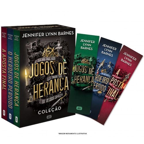 Box da série fenômeno do TikTok com os livros: Jogos de Herança, O herdeiro perdido e A aposta final A série best-seller Jogos de Herança, de Jennifer Lynn Barnes, ganhou um box com os livros da trilogia principal, que acompanham a saga eletrizante , repleta de enigmas e mistérios, de Avery Grambs. Confira os títulos: Jogos de herança: A sorte de Avery Grambs muda no instante em que o bilionário Tobias Hawthorne morre e deixa toda a sua fortuna para ela. Só que Avery não tem ideia de quem é T obias. Para receber a herança, ela deve se mudar para a enorme Casa Hawthorne, onde cada cômodo tem o toque do magnata – e seu amor por quebra-cabeças, enigmas e códigos. Presa em um mundo de riqueza, privilégios e perigo, a jovem terá que jogar sozi nha para lidar com a família que Tobias acabou de despojar, incluindo os quatro netos do bilionário, que cresceram com a expectativa de que um dia herdariam a fortuna. O herdeiro perdido: Após descobertas bombásticas, Avery quer juntar as peças e de scobrir por que Tobias Hawthorne deixou toda a sua fortuna para ela, uma estranha. Enquanto isso, Grayson e Jameson, os netos enigmáticos e magnéticos de Hawthorne, continuam a puxar a garota em direções diferentes - no jogo e no coração. O perigo es tá à espreita e Avery, Grayson e Jameson terão que se unir se quiserem descobrir mais sobre o herdeiro perdido e quais pistas ele guarda. A aposta final: Avery precisa sobreviver a mais algumas semanas na Casa Hawthorne antes de colocar as mãos na t ão esperada fortuna. E a única coisa que a faz seguir em frente são os irmãos Hawthorne. A vida dela é entrelaçada à deles. Problemas surgem quando uma visita inesperada bate à porta e cuja presença pode mudar tudo. Logo fica claro que ainda falta en caixar mais uma peça do quebra-cabeça, e Avery e os irmãos Hawthorne são arrastados para um jogo perigoso contra um desconhecido e poderoso jogador. Ean: 9786585348195