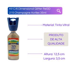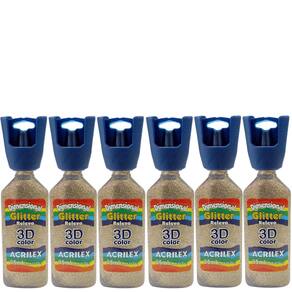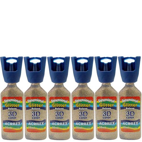 Box Kit 6 Dimensional Glitter 3D Acrilex 35ml - Escolha Cor - Champagne