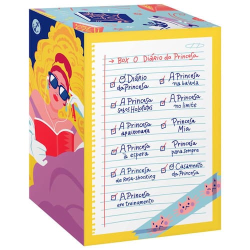 O box O Diário da Princesa, de Meg Cabot, reúne os onze livros da série best-seller do New York Times em uma edição especial. São seis volumes em uma caixa rígida e estilizada, acompanhada de seis marcadores personalizados.