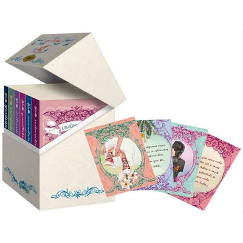 A série Perdida , o maior sucesso de Carina Rissi, chega com novas capas ilustradas e brindes exclusivos, reunidos em um box-baú que vai deixar os leitores ainda mais encantados! Perdida conta a aventura apaixonante de Sofia, uma garota moderna e irreverente que vai parar no século dezenove, sem ter ideia de como voltar para casa — ou se isso sequer é possível. Mas, ao conhecer o encantador Ian Clarke, a aflição por se ver em um tempo que não é o seu dará lugar a sentimentos muito mais agradáveis... Em Encontrada, Sofia percebe que se tornar parte da família Clarke não vai ser tão simples quanto imaginava. Terá que se esforçar para se encaixar em um mundo tão diferente, com hábitos e costumes que muitas vezes ela não compreende — o que gera gafes e confusões. Mas ela está disposta a enfrentar qualquer obstáculo para conquistar o seu felizes para sempre. Finalmente casado com a mulher que ama, Ian Clarke é um homem de sorte e sabe muito bem disso. Entretanto, em Destinado , volume contado pela perspectiva do príncipe encantado de Sofia, a felicidade de Ian começa a ruir. No baile de aniversário de sua irmã, Elisa, a menina se torna alvo de um escândalo, e um assunto do passado que há muito o persegue retorna para assombrá-lo. Aterrorizado com a possibilidade de perder Sofia, Ian fará o possível para proteger sua amada, sem se importar com as consequências. Em Prometida os leitores vão conhecer a história de Elisa, a doce porém decidida irmã de Ian Clarke, que ignorou as normas sociais da época em que vive e acabou envolvida num escândalo. E noiva de um homem que só beijou uma vez! Destinados a ficar juntos, mas separados pelo coração, Lucas e Elisa vão se envolver em uma sinuosa dança, marcada por segredos, mágoas do passado, intrigas e uma arrebatadora paixão, que vai pôr em risco não apenas seus sentimentos, mas a vida de ambos. Diferente de Elisa, Valentina de Albuquerque descobriu muito cedo que não é nenhuma princesa encantada. Em vez de bailes e romance, tudo que a jovem deseja é encontrar um jeito de viver com dignidade longe do pai e da madrasta. Valentina está quase desistindo do amor, mas, em Desencantada , o destino parece decidido a contrariá-la. Um equívoco embaraçoso sela o noivado da moça com o irritante e atraente Leon Navas. E, após um terrível acidente, Valentina vai atrás do responsável e acaba sucumbindo à irresistível e devastadora paixão por Leon, sem se dar conta de que o perigo ainda está à espreita... No arrebatador volume final da série que conquistou os leitores, você conhecerá Marina e Ana Laura, as filhas de Sofia e Ian. Apaixonados e felizes, a vida da família Clarke não poderia ser melhor! Ou assim eles pensavam. Um problema na fábrica ameaça enviar Sofia para a prisão e pode abalar seu casamento. E as irmãs Nina e Analu têm a cumplicidade estremecida depois do noivado da primeira, deixando Analu desolada. Entre segredos do presente e do passado, novas e antigas paixões, traições e lealdade, mãe e filhas farão o impossível umas pelas outras — e acabarão descobrindo, em Indomada , que os laços inquebráveis do amor podem, sim, se partir... Ao longo de duas décadas — que rendem duas filhas, grandes amigos e muitas histórias —, Sofia e Ian vão enfrentar desafios enormes e provar mais uma vez que o verdadeiro amor ultrapassa todas as barreiras. Até a do tempo.