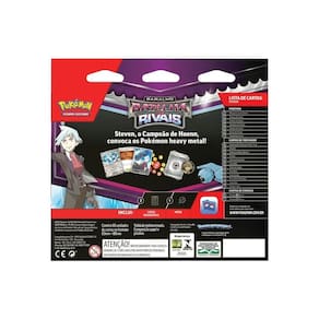 Box Pokémon Baralho Batalha de Rivais Steven Copag 60 Cartas Box Pokémon Baralho Batalha de Rivais Steven Copag 60 Cartas Devagar e sempre para vencer a batalha Metagross ex do Steven é muito mais que um Pokémon bom de briga com PS robusto e um ataque poderoso. A Habilidade Inicialização X permite que você acelere até duas Energias extras aos seus Pokémon a cada turno e, com isso, fortaleça vários atacantes diferentes ao longo do jogo. Marca: copag Linha: box Pokémon Modelo: Baralho Batalha de Rivais Steven Idade recomendada: A partir de 4 anos Conteúdo da embalagem: 1 Baralho com 60 cartas, pronto para jogar. 1 Conjunto de contadores de dano. 1 Moeda grande metalizada. 1 Carta codificada para jogar este baralho online. Dimensões da embalagem: 15 x 20 x 4 cm Altura x Largura x Comprimento Peso aproximadamente : 200g : 30 dias Homologação Inmetro: IP-BRI-2419/2021-01 Marca: Não Informado Ean: 7896192352507