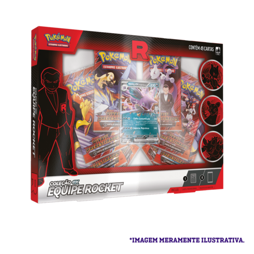Escolha entre a mente estratégica de Mewtwo ex da Equipe Rocket, as toxinas potentes de Nidoking ex da Equipe Rocket ou o poder soberbo de Persian ex da Equipe Rocket, que aparecem nesta coleção como uma carta holográfica promocional, e descubra ainda mais cartas de Pokémon e de Treinador nos vários pacotes de booster.