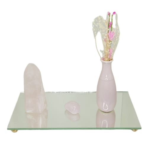 O Box do Amor é composto por 1 Ponta de Quartzo Rosa, 1 Pedra Quartzo Rolada, 1 Vaso com Flores Perfumadas e 1 Bandeja de Espelho. O box possui pedras naturais e itens feitos de forma artesanais, sendo um presente ideal para uma pessoa querida e um belo item de decoração.