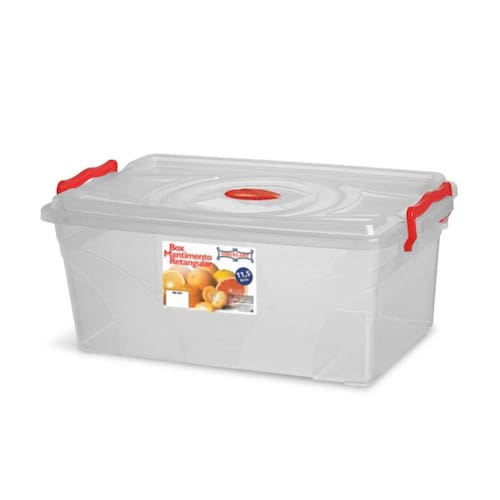 O Pote é ideal para armazenar Mantimentos ou Organizar os produtos do dia a dia. Sua transparência permite a visualização do conteúdo, dispensando a etiquetagem externa. Dimensões: 41x25,5x18 Com travas Capacidade: 11,5 litros Material: Plástico Quantidade: 1