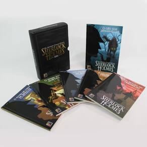 Nesse combo você encontrará 6 livros capa brochura da série sherlock holmes (um estudo em vermelho, um escândalo na boêmia e outras aventuras, o roubo da coroa de berilos e outras aventuras, o cão dos baskervilles, a liga dos cabeças vermelhas e outras aventuras e o signo dos quatro).
