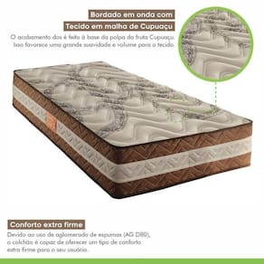 O conjunto Box Solteiro Samambaia com Colchão Solteiro Molas Ensacadas Samambaia oferece uma excelente combinação de suporte e conforto para uma boa noite de sono. O box proporciona uma base sólida e estável, enquanto o colchão, com seu sistema de molas ensacadas, oferece suporte individualizado e redução da transferência de movimento para uma experiência de sono mais tranquila. Juntos, proporcionam uma ótima noite de descanso. Altura do Conjunto: 42 cm Ambiente: null Ambiente Principal: Quarto Cor: Rustico Cerejeira Informação Complementar: 1x Colchão Solteiro Molas Ensacadas Samambaia 30x88x188cm Rustico Cerejeira Largura: 88 cm Altura: 30 cm Peso: 35.5300 Profundidade: 188 cm Necessita Montagem: Não