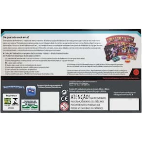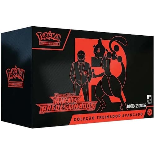 Rivais PredestinadosDe que lado você está?Treinadores de Pokémon, estado de alerta máximo! A nefasta Equipe Rocket está de volta pronta para colocar seu mais novo plano em ação, e Treinadores corajosos estão na corrida para detê-la. Junte-se as grandes nomes, como Cíntia e Garchomp ex, Ethan e Ho-Oh ex ou Arven e Mabosstiff ex... ou reveja os seus conceitos de lealdade e lute junto de Pokémon da Equipe Rocket, como Mewtwo ex, sob o comando de Giovanni! Escolha um lado, reúna seus aliados e entre com tudo na batalha na expansão Escarlate e Violeta - Rivais Predestinados do Pokemon Estampas Ilustradas! A Coleção Treinador Avançado de Escarlate e Violeta – Rivais Predestinados do Pokémon Estampas Ilustradas contém: