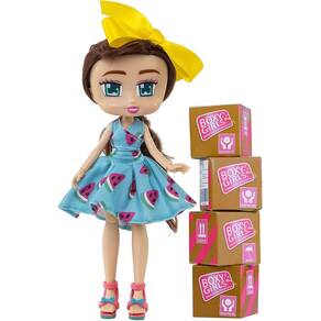 Delicie seu filho amante da moda com o Boxy Girls Doll Brook. Seu pequeno vai gostar de unboxing todos os seus novos achados de moda. Ele vem com quatro caixas de envio que seu filho consegue abrir. Tem um total de 12 ou mais surpresas de moda que podem variar de sapatos, bolsas, maquiagem, joias e muito mais. Há quatro bonecas de moda para colecionar, cada uma com uma personalidade única e caixas de transporte diferentes. Conheça Brooklyn, que gosta de tirar fotos de sua comida favorita e qualquer coisa colorida. O Boxy Girls Doll Brook vem embalado com saltos coloridos e vestidos com estampa de frutas. É recomendado para maiores de 6 anos.