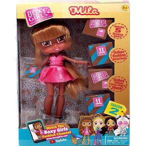 Delicie seu filho amante da moda com as bonecas Boxy Girls! Seu pequeno vai gostar de unboxing todos os seus novos achados de moda. Cada boneca vem com cinco caixas de envio que seu filho pode abrir. Cada caixa pode conter qualquer um dos 12 sapatos, bolsas, maquiagem, joias ou outros acessórios para sua boneca usar e segurar. Há quatro bonecas de moda para colecionar, cada uma com uma personalidade única e caixas de transporte diferentes. Boxy Girls são recomendadas para maiores de 6 anos.