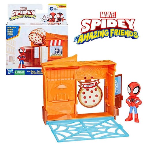 Homem Aranha Spidey Amazing Friends Pizzaria City BlocksUMA VIAGEM AO MUNDO DO ARANHA! Os pequenos fãs do Aranha a partir dos 3 anos podem imaginar entrar no mundo do Spidey enquanto criam suas próprias aventuras incríveis com este conjunto de brinquedos inspirado no programa pré-escolar favorito, Spidey and His Amazing Friends!MARVEL PLAYSET COM RECURSOS DIVERTIDOS: Cada conjunto de super-heróis do Spidey and His Amazing Friends City Blocks tem seus próprios recursos exclusivos, como alçapões, placas giratórias, teias e muito mais!Marca: HasbroCódigo de barras: 5010996139153Modelo: F8360Idade: +3 anos