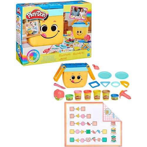 Play DOH Formas de Piquenique Hasbro F6916 Faça chuva ou faça sol, o conjunto de iniciação Picnic Shapes é um conjunto de piquenique infantil perfeito para qualquer momento! Ele vem com 12 ferramentas iniciais, 6 cores Play-Doh e uma cesta de piquenique de brinquedo que armazena as ferramentas. À medida que as crianças exploram formas básicas como quadrados, círculos e triângulos, elas podem usar sua imaginação e empilhar essas formas em sanduíches de massinha.