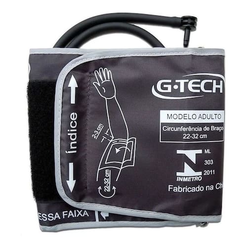 Braçadeira Para Medidores de Pressão De Braço GTECH com circunferência de 22 x 32 centímetros.Características:- Com manguito confeccionada em nylon e isento de látex, com fecho de contato;- Para uso Exclusivo em Aparelho de Pressão Digital;- Livre de látex, minimiza o risco de reação alérgica;- Durabilidade, conforto, mais leve e resistente;- Braçadeira reutilizável para medição da pressão arterial;- Revestimento antibacteriano ajuda a prevenir o crescimento de fungos e bactérias;- Bordas com dobras diminuem o risco de cortes e de arranhões;- Sem bainhas cosidas para rasgar ou esfiapar;- Contato de alta qualidade;- Material: Nylon;- Cor: Azul Marinho;- Validade: Indeterminada;- Possui certificado do InmetroCompatível com os modelos:- APARELHO DE PRESSÃO DIGITAL DE BRAÇO LA250 G-TECH;- APARELHO DE PRESSÃO DIGITAL DE BRAÇO AUTOMÁTICO BPMA100 G-TECH;- APARELHO DE PRESSÃO DIGITAL DE BRAÇO AUTOMÁTICO BP3AA1-1 MASTER G-TECH;- APARELHO DE PRESSÃO DIGITAL DE BRAÇO AUTOMÁTICO BSP11 G-TECH. Itens Incluso:01 Braçadeira G-tech 22 x 32 Centímetros.**Produto com certificado no Inmetro*Registro ANVISA: 80275310049