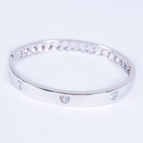 Bracelete em ródio branco com trabalhado em formato de corações, aplicação de zircônias cristais em formato de coração é delicado e luxuoso que te deixa em destaque em qualquer situação.
