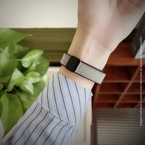 Sistema de fecho magnético integrado que proporciona ajuste rápido, firme e personalizado ao pulso, garantindo praticidade na colocação e remoção.