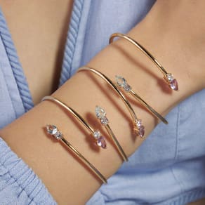 Quem viveu sua adolescência no final dos anos 1990 certamente celebrou o nascimento de um ícone da música: Britney Spears. A cantora norte-americana é dona de hits inesquecíveis, performances emblemáticas, muitas polêmicas e claro, muito estilo. E esse seu estilo único de sempre utilizar joias no dia a dia, inspirou a delicada e marcante coleção Spears (que também significa “lanças” em inglês, a forma dos cristais que apresentamos). Peças que antes eram restritas a festas e eventos, ganham cada vez mais espaço nos looks do dia, exibindo no street style a beleza de joias que não precisam ficar mais guardadas, tornando as ruas um verdadeiro desfile. Celebre o sucesso das vendas dessas peças inspiradas na alta joalheria, cravejadas em zircônias brancas, com cristais ametista, água marinha e rosa.