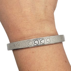 Durabilidade: O aço inoxidável é conhecido por sua resistência à corrosão e desgaste, garantindo que o bracelete mantenha sua aparência impecável por muitos anos.Hipoalergênico: Ideal para pessoas com pele sensível, o aço inoxidável reduz o risco de alergias e irritações.Manutenção Fácil: Este material é fácil de limpar e não mancha, tornando o cuidado do bracelete simples e prático.Sustentabilidade: O aço inoxidável é um material reciclável, o que torna este bracelete uma escolha consciente para o meio ambiente.Versatilidade: Com um design moderno e clássico, este bracelete é perfeito para qualquer ocasião, do uso diário a eventos especiais.Adicione um toque de charme ao seu visual com o Bracelete Metal Desenho Coração Prata e desfrute da combinação perfeita de estilo e resistência.