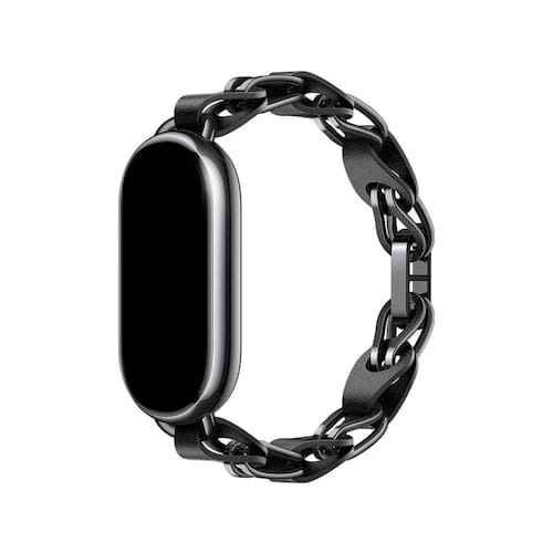 Dê um upgrade de estilo na sua Xiaomi Smart Band 8 com esse bracelete trançado em couro e aço inoxidável preto.