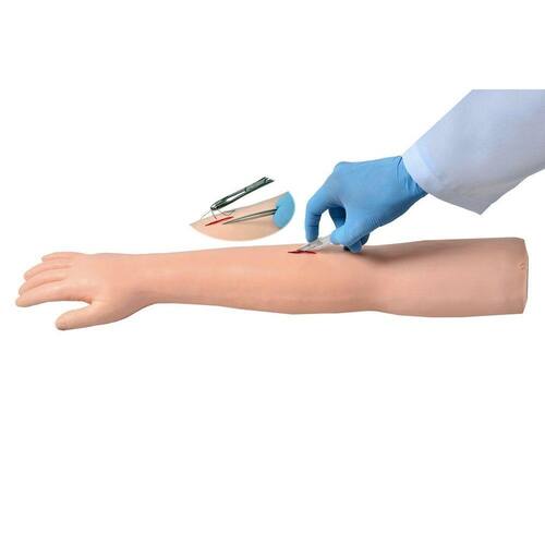 Simulador de sutura no braço; Confeccionado em resina plástica emborrachada silicone e espuma especial; O modelo SD-4021 Apresenta dimensões naturais de um braço de um adulto; com grande detalhe anatômico este simulador é ideal para: