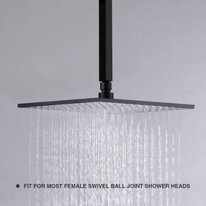 TRUSTMI Braço de chuveiro quadrado de 30,5 cm com flange montada no teto Material: aço inoxidável Cor: preto fosco Forma: quadrado Comprimento: 30,5 cm Conector: 1/2 NPT ao teto, 1/2 IPS para cabeça de chuveiro A embalagem inclui: 1 braço de chuveiro de 30,5 cm. 1 x flange quadrada - MATERIAL: Braço e flange de chuveiro de construção de aço inoxidável premium, material durável para garantir qualidade e melhorar a longevidade, braço de chuveiro resistente para cabeça de chuveiro maciça - COR: acabamento preto fosco, banhado, não pintado, resiste à corrosão e manchas. Fácil de combinar com chuveiros pretos - Conectores: rosca macho NPT 1/2" cônica extra longa dos EUA, rosca macho padrão IPS 1/2" para cabeça de chuveiro de chuva, adequado para a maioria das cabeças de chuveiro superiores de conector fêmea - TAMANHO: braço de chuveiro quadrado de 2,5 cm por 2,5 cm, comprimento de 30,5 cm (total de 33,8 cm inclui extremidades rosqueadas). Braço de chuveiro em forma quadrada moderna, instalação mais fácil. Interior liso para fluxo de água desimpedido - A embalagem inclui: um braço de chuveiro quadrado de 30,5 cm, um flange quadrado de 5,8 x 5,8 cm. Acabamento preto fosco.