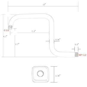 TRUSTMI Braço de chuveiro de aço inoxidável de 33 cm de altura, montado na parede Material: aço inoxidável Comprimento: 33 cm Cor: Cromado Conector: 1/2" NPT para parede, IPS de 1/2" para cabeça de chuveiro A embalagem inclui: 1 x braço de chuveiro 1 x flange - Estrutura de aço inoxidável sólido, 33 cm de comprimento para você desfrutar de chuveiro de chuva, compatível com ducha quadrada ou redonda de 20 cm, 25,4 cm, 30,5 cm (não serve para chuveiros quadrados de 30 cm sem junta esférica giratória ou maiores) - Acabamento cromado polido, ilumina o braço do chuveiro, resiste a arranhões e corrosão - Padrão dos EUA 1/2" NPT cônico para parede, rosca reta IPS de 1,27 cm para cabeça de chuveiro - 15 mm de diâmetro interno e 22 mm de diâmetro externo, resistência suficiente para o seu chuveiro grande, altura total de 20,8 cm com chuveiro de 12,7 cm levantada - Flange com borracha para proteger o braço do chuveiro de arranhões. Design em forma de S para melhorar sua capacidade de carga e elevar sua cabeça de chuveiro. Fácil instalação, sem ferramentas.