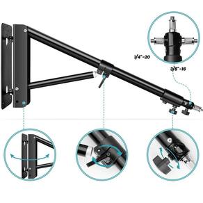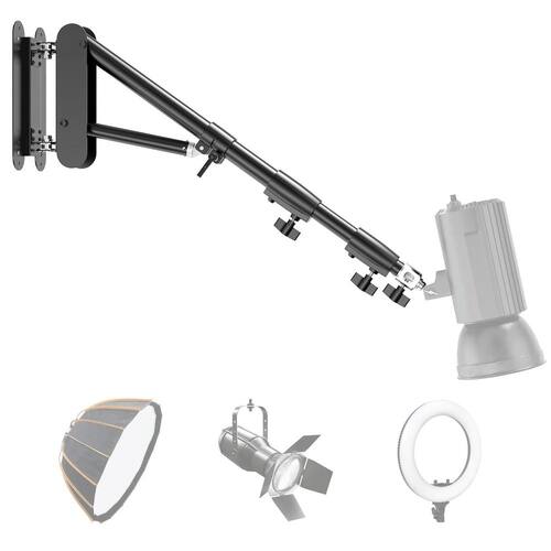 Este Braço Suporte de Parede K130 para Estúdio Fotográfico 130cm é um Braço Lança para Montagem em Parede com extensão de até 130cm. suportando equipamentos e acessórios fotográficos de até 3Kg, com Movimento Panorâmico de 180 Horizontal e Vertical , o Suporte de Parede K130 possui um de 5/8 com o Adaptador Espigão dos rosca de montagem 1/4-20 ou 3/8-16 em cada extremidade.Construído em liga de alumínio, o Braço Lança de Parede para Estúdio Fotográfico garante resistência e durabilidade. Uma base triangular robusta que mantém o braço firmemente no lugar sem inclinar, permitindo que ele suporte um peso de até 3kg. Um acessório fotográfico profissional para segurar seu equipamento com segurança para trabalhos criativos.Para Fotógrafos e Cinegrafistas que buscam economizar espaço, este Braço Telescópios de Parede é uma alternativa ideal aos suportes de iluminação de chão. O Braço Suporte de Parede ajuda a posicionar seu equipamento no lugar certo para você criar sem ocupar seu valioso espaço, pois mede apenas 80cm após ser recolhido e pode ser dobrado e encostado na parede para manter seu estúdio organizado.Se estende de 80cm a 130cm para atender às suas diferentes necessidades de fotografia. O Braço Suporte de Parede pode ser girado para cima e para baixo ou de um lado para o outro com base na direção específica de montagem de 0 a 180, facilmente ajustável para obter ângulos de feixe precisos. Este suporte de parede cobre tudo para garantir o ângulo de iluminação perfeito para suas fotos.Equipado com um Adaptador Espigão de 5/8 possui entradas de 1/4 e 3/8 em cada extremidade, sendo perfeito para Equipamentos e Acessórios de Estúdio como Flashs, Iluminadores, Ring Light, Softbox, Refletores, Guarda-chuvas, Microfones, Câmeras e muito mais. Projetado para um ambiente de trabalho mais organizado e eficiente, perfeito para fotografia, gravação, transmissão e cuidados com a beleza.Principais Características: Braço de lança resistente para montagem em parede Design robusto com tubo estabilizador duplo Barras Telescópicas com 80cm a 130cm comprimento Suporta até 3kg em extensão total Totalmente dobrável contra a parede Espigão removível de 5/8 com roscas macho de 1/4-20 e 3/8-16 Montagem Espigão pela parte superior ou lateral Perfeito para Equipamentos e Acessórios de Estúdio como Flashs, Iluminadores, Ring Light, Softbox, Refletores, Guarda-chuvas, Microfones, Câmeras e muito mais