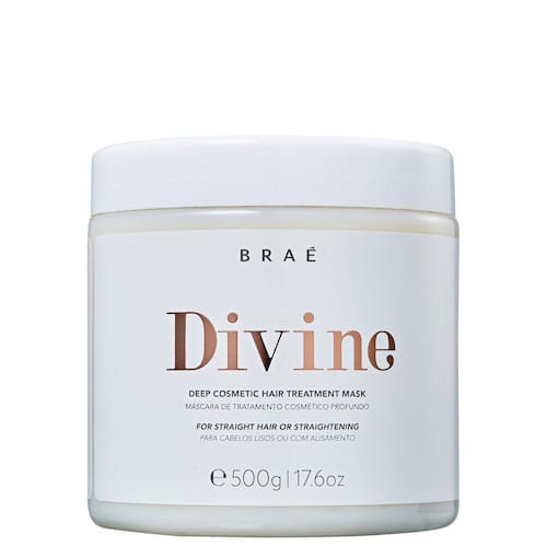 Máscara de tratamento para cabelos lisos ou quimicamente tratados. Braé Divine nutre intensamente, restaura e alinha.