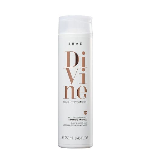 Shampoo para cabelos com frizz. Braé Divine deixa os fios mais alinhados e disciplinados durante a limpeza.