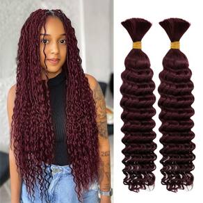 -?6-8 99J Deep Wave Human Braiding Hair Full Head?Cabelo encaracolado humano para tranças boho está disponível em 14-22 polegadas, feixes molhados e ondulados Cabelo humano 14-16 polegadas 1 pacote é 40g, 18-20 polegadas 1 pacote é 50g, 22 polegadas 1 pacote é 60g. O cabelo humano para trançar mulheres negras tem comprimento e peso reais, qualidade garantida. Se você gosta de um feixe de cabelo humano de cabeça cheia para tranças boho de 14 polegadas, recomendamos que compre de 6 a 8 pacotes de cabelo trançado humano em massa de ondas profundas para tranças boho sem nós.