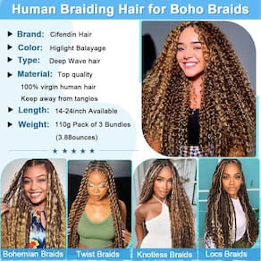 - ?Durável e duradouro?: Projetado para uso prolongado, este cabelo humano trançado de alta qualidade resiste ao frizz e mantém seu padrão encaracolado por semanas. Sem queda ou emaranhamento garante que suas tranças boho permaneçam frescas sem manutenção diária. Feixes soltos (sem tramas) permitem espessura personalizada para estilos cheios e volumosos.