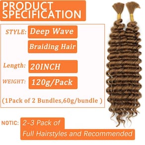 O cabelo humano trançado é uma das extensões de cabelo mais populares, pode ser utilizado para muitos estilos de cabelo diferentes. O cabelo trançado 100% humano é muito caro, e o cabelo trançado sintético normal é fácil de emaranhar. Para resolver esse problema, misturamos alguns cabelos humanos dentro dos feixes sintéticos de ondas profundas para melhorar a qualidade. Depois de misturar o cabelo humano em massa para trançar, a textura e a sensação de toque melhoraram, e o cabelo humano encaracolado para tranças boho não é fácil de embaraçar e soltar, você pode usar o cabelo boho para trançar como todos os tipos de tranças boho e outros estilos de cabelo. Todos os cabelos cacheados trançados precisam ser mantidos, durarão mais dias com os devidos cuidados. Como cuidar do cabelo humano em massa para trançar: 1. Penteie suavemente o cabelo humano boho trançado com os dedos ou um pente de dentes largos da ponta ao topo. 2. Lave o cabelo a granel para tranças boho em água morna com o xampu e condicionador de cabelo. 3. Limpe o cabelo bukl suavemente com uma toalha e deixe secar naturalmente para manter a forma e a textura. O cabelo boêmio para trançar o cabelo humano trará um visual bonito e charmoso para você. Nosso cabelo trançado de ondas profundas é fácil de fazer tranças boêmio, se você prefere tranças boêmias, tranças boho sem nós, tranças box ou penteados cacheados com ondas de água, este cabelo volumoso para tranças boho atenderá às suas necessidades. - Material de alta qualidade: este cabelo trançado de ondas profundas é feito de cabelo sintético premium resistente ao calor misturado com alguns cabelos trançados humanos, suave e macio, a sensação e a textura são semelhantes ao cabelo humano trançado, mas o preço é mais barato. Ele criará um estilo de cabelo mais natural e charmoso para você - Comprimento e peso: o cabelo boho para trançar tem 45 cm, comprimento adequado para a maioria das pessoas. Cada pacote inclui 2 peças de tranças boho, o peso total é de cerca de 120 g (2 peças/pacote, 60 g/peça). Se você gosta de tranças de cabeça inteira, recomendamos que você compre 2-3 pacotes de cabelo trançado boho - Fácil de trançar e de longa duração: este cabelo trançado molhado e ondulado pode ser facilmente trançado em seu cabelo, durará vários meses após ser trançado devido ao material de alta qualidade, sem emaranhados e sem queda. O cabelo boêmio para trançar o cabelo humano é fácil de manter e não irrita a pele - Vários estilos de cabelo: Cabelo encaracolado para tranças boho sem trama, é adequado para vários estilos de trança. O cabelo micro trançado pode ser utilizado para tranças boho sem nós, tranças de caixa, tranças boêmias, tranças de deusa, micro tranças, etc. O cabelo humano a granel para tranças boho também pode ser utilizado para adicionar volume e comprimento ao seu cabelo natural - Várias ocasiões de uso: nosso cabelo trançado boho trará belos estilos de cabelo para você, elevará sua aparência e confiança. O cabelo humano a granel para trança é adequado para o uso diário, casamento, encontros, férias, festas, presentes e assim por diante. Se você tiver alguma dúvida e problema depois de receber os itens, sinta-se à vontade para entrar em contato conosco