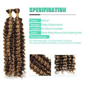 Cabelo humano trançado ombré, 2 feixes/pacote 100 g, cabelo humano encaracolado 4/27 para tranças boho extensões de cabelo sem trama 10A cabelo humano virgem brasileiro trançado para tranças Boho - ?Cabelo humano trançado para tranças Boho Dica?Um feixe de cabelo trançado não é suficiente para criar um penteado, mais pessoas optam por pedir 100 g mais 100 g para poder fazer um penteado mais perfeito - Comprimento e cor do cabelo humano trançado: cabelo humano ondulado profundo para trançar com uma ampla variedade de cores (#1B/#2/#4/#27/#30/#350/#4-27/#99J/#613), comprimentos (40.6-71.1 cm) disponíveis, você pode escolher a combinação perfeita para suas preferências e alcançar o visual desejado - ?Material de cabelo humano trançado? Usamos 100% cabelo humano virgem brasileiro 10A não processado, cabelo trançado humano molhado e ondulado. A textura do cabelo humano em massa para trançar é incrivelmente macia, suave e fácil de manusear, parecendo muito com cabelo natural - ?Cabelo boho para trançar mais amplamente utilizado? O cabelo encaracolado humano trançado oferece grande versatilidade, não apenas adequado para tranças boêmias, tranças sem nó, tranças boho e tranças de caixa, mas também permite um estilo fácil para diferentes visuais modernos - ?Cabelo humano Boho Trança Longa Duração?Devido à sua composição de cabelo real de alta qualidade, a trança de cabelo humano é excepcionalmente durável, mantendo seu apelo estético por longos períodos. Isso garante que você possa usar esses penteados com confiança