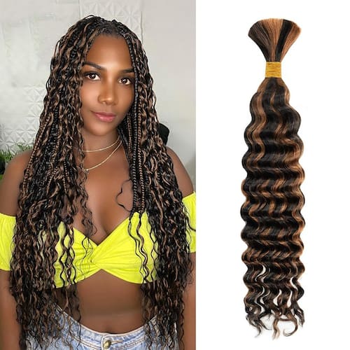 - ?100% cabelo humano virgem ondulado profundo?O cabelo humano ondulado profundo para tranças boho é feito de 100% cabelo virgem brasileiro 10A molhado e ondulado não processado. Feixes cheios e grossos de ondas profundas para tranças boho, perfeitamente misturados com o seu cabelo. A textura do volume do cabelo humano para trançar é muito macia, confortável e suave, o lindo boho enrola cabelo humano do início ao fim, sem queda, sem nós. Tranças Boho de cabelo humano para trançar não machucam o couro cabeludo, fácil de manter.