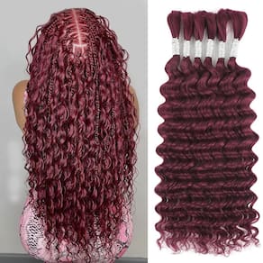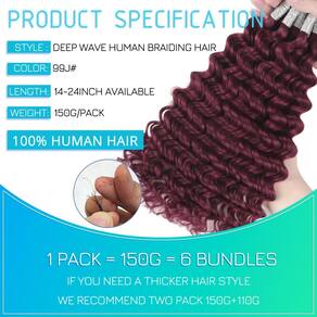99J Cabelo humano trançado 55 cm pacote com 6 cabelo humano ondulado profundo para trançar, sem trama, cabelo humano encaracolado virgem brasileiro, trançado, extensões de cabelo para tranças Boho 150 - Peso e comprimento: o comprimento do cabelo humano trançado é de 35 a 61 cm; o peso é por pacote e 150 g/6 pacotes; se você quiser que o cabelo fique mais cheio e perfeito; recomendamos que você compre três-quatro pacotes (150 g-200 g) de cabelo humano a granel para trançar - Cabelo humano a granel de alta qualidade: o cabelo humano ondulado profundo da Via Láctea sem trama é feito de 100% cabelo humano virgem brasileiro 10A não processado; a textura do cabelo humano trançado é incrivelmente macia e natural; confortável e suave, fiel ao comprimento, sem embaraço, sem cheiro estranho, saltitante e brilhante, cheio e grosso. Combina perfeitamente com o seu cabelo, parece mais realista e mais bonito - Cor do cabelo: para evitar problemas e tingimento irregular, fornecemos seis cores diferentes para você escolher; preto natural; nº 27; loiro; 27/30#; 350#Gengibre; 99j#Borgonha; P4/27#; você pode escolher cores diferentes para misturar e combinar; estilo de moda diferente - Cabelo humano trançado: cabelo humano trançado é excepcional; mantém seu apelo estético por longos períodos. Sem se preocupar com danos prematuros ou queda; especialmente adequado para diferentes estilos de extensões de cabelo trançado; prático para participar de qualquer festa e uso diário - Serviço: Aceitamos humil as sugestões dos clientes; se você encontrar problemas, informe-nos; o mais rápido para ajudá-lo a resolver